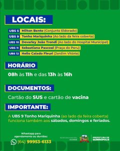 Não perca tempo – procure uma sala de vacina ou a unidade de saúde mais próxima para agendar seu horário.Além disso, a vacina continua disponível para a faixa etária de 9 a 14 anos, agora em dose única. Aproveite essa oportunidade para se proteger e cuidar da sua saúde!