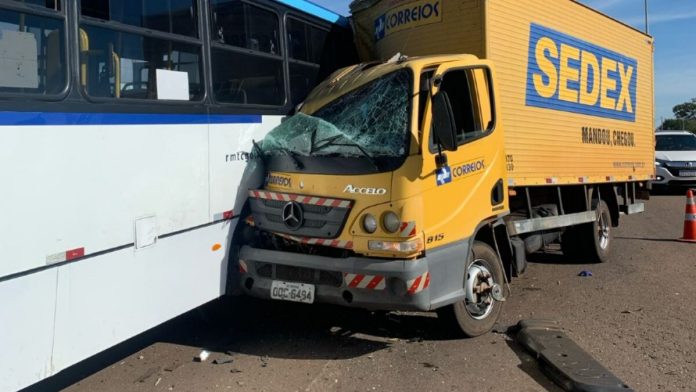 De acordo com a Polícia Militar, relatos preliminares apontam que o motorista do caminhão dos Correios teria perdido o controle do veículo e colidido com a traseira do ônibus, provocando o engavetamento. Uma motocicleta que seguia à frente do transporte público acabou envolvida no acidente. Com a força do impacto, o veículo foi empurrado, e tanto o condutor quanto o passageiro caíram na pista. Apesar do susto, houve apenas danos materiais leves.
