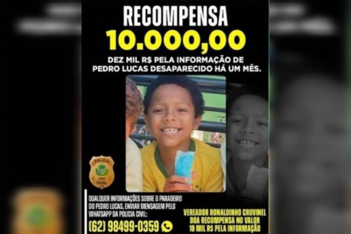 Um vereador de Rio Verde, região Sudoeste de Goiás, entrou em contato com a Polícia Civil (PC) oferecendo R$ 10 mil de recompensa para quem der informação válida que leve ao paradeiro do garoto Pedro Lucas, de 9 anos, desaparecido há um mês.