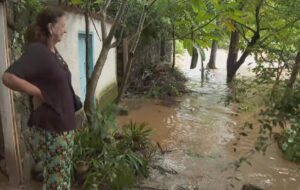 “Toda vez que esse rio enche assusta a gente, porque de repente ele sobe. Quando você menos espera, ele enche. A água já está entrando na casa da vizinha, vai entrar aqui em casa de novo”, diz a comerciante Mara Veiga, que mora às margens do Rio Vermelho.
