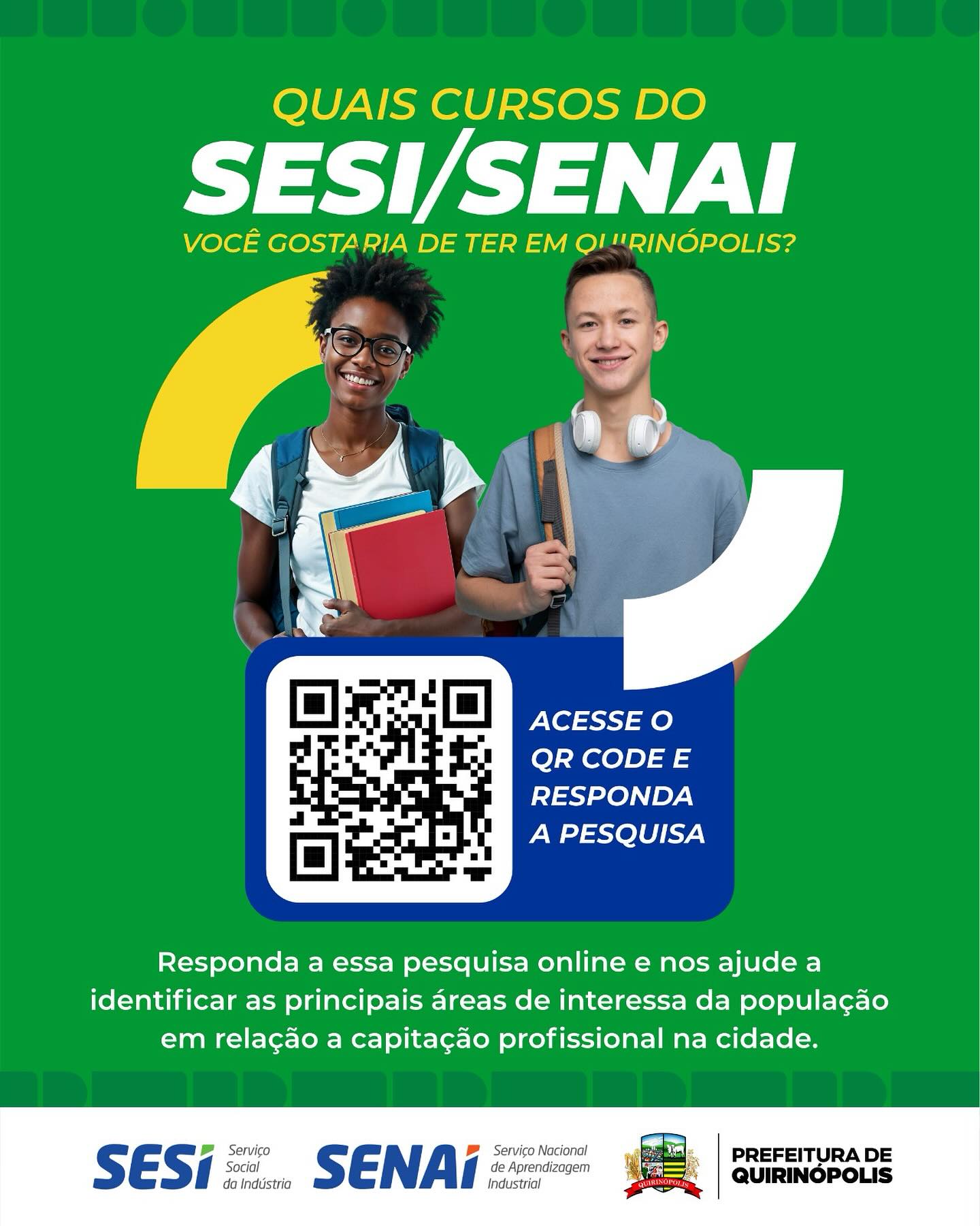Quando o assunto é formação profissional, quais cursos você gostaria de ter ofertados em Quirinópolis? Responda a este formulário preparado pelo SESI/SENAI e nos ajude a planejar novas oportunidades para nossa população. 😆