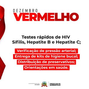 Em Quirinópolis, a Secretaria Municipal de Saúde. estará no próximo dia 20/12 realizando várias ações na Praça da Velha Matriz.