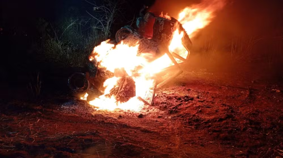 Ainda conforme a polícia, o carro ficou completamente destruído e se incendiou em seguida. As chamas se alastraram pela vegetação às margens da rodovia. O fogo atingiu as duas vítimas que estavam presas no interior do carro e as outras três pessoas que foram arremessadas para fora durante a colisão.