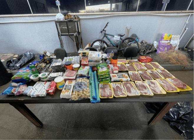 Dentro do volume, os policiais encontraram diversos produtos alimentícios e de higiene, como carnes, queijos, ovos, café, macarrão, sabonetes, cremes dentais, ovos de Páscoa, entre outros. O gerente do supermercado foi acionado e, após verificar as imagens das câmeras de segurança, foi possível identificar as autoras do furto: duas funcionárias do estabelecimento.
