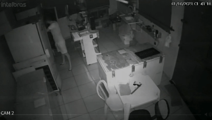 As imagens mostram o suspeito do furto indo ao local duas vezes e ainda ingerindo bebidas alcoólicas dentro do local.