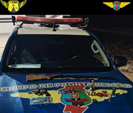 Diante da declaração, a equipe deslocou-se até o endereço informado e localizou as referidas armas de fogo.
