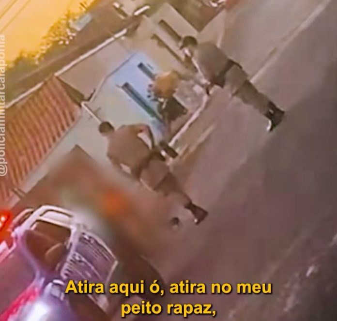 A Polícia Militar (PM) de Goiás prendeu um homem acusado de manter uma mulher em cárcere privado e usá-la como escudo humano contra os agentes, em Caiapônia. A ocorrência foi registrada na quarta-feira (25) e o indivíduo também fez ameaças e xingamentos contra os policiais, além de provocações. “Atira no meu peito.”