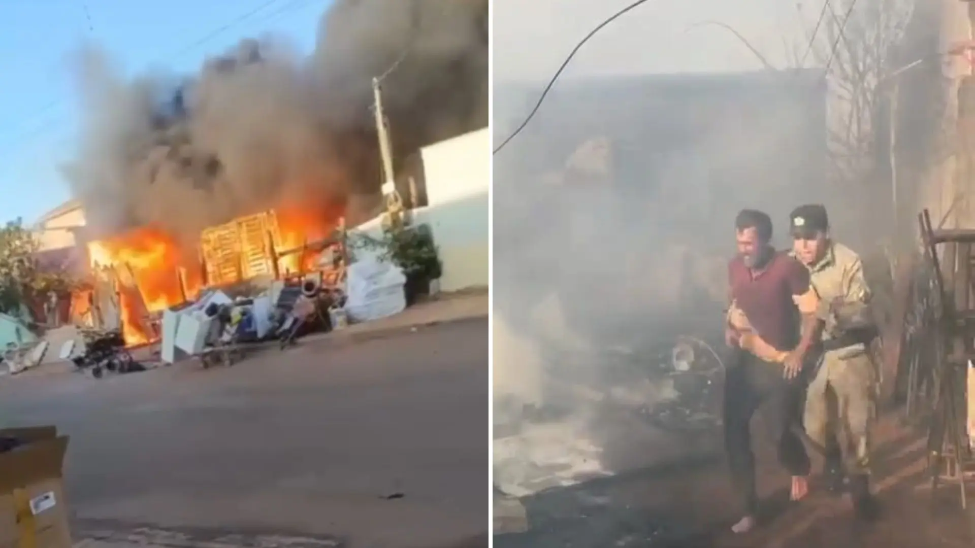 Dois homens, irmãos, foram retirados de casa em chamas em Teresópolis de Goiás, na manhã desta segunda-feira, 1º. O local estava cheio de material reciclável, que é inflamável. Como parte do material estava no exterior da casa, a saída ficou bloqueada pelas chamas. Segundo a Polícia Militar (PM), os dois homens estavam dentro da residência, encurralados pelas chamas e a fumaça tóxica.