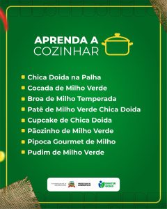 De 5 a 8 de maio, no Centro Comunitário Dona Margarida, você vai aprender receitas incríveis como Chica Doida na Palha, Cocada de Milho Verde, Pudim de Milho Verde e muito mais!