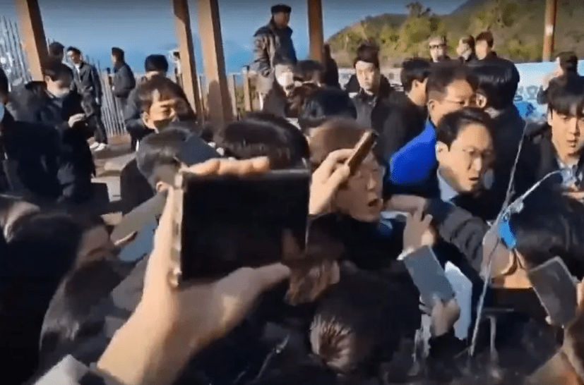 Lee Jae-myung, lídero do principal partido da oposição, foi esfaqueado no pescoço no começo da manhã desta terça-feira, 2, em Busan, no sudoeste da Coreia do Sul. Vídeo mostra momento em que o político concedia uma coletiva de imprensa e falava com apoiadores durante uma visita ao estaleiro de construção de um aeroporto na ilha de Gadeok.