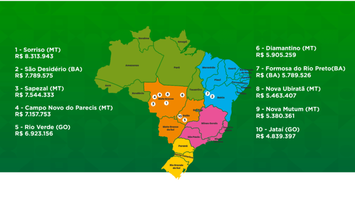 O Ministério da Agricultura e Pecuária, por meio da Secretaria de Política Agrícola (Mapa/SPA), mapeou os 100 municípios mais ricos do Brasil no agronegócio. A análise se baseia nos dados da pesquisa anual do IBGE sobre a Produção Agrícola Municipal (PAM).