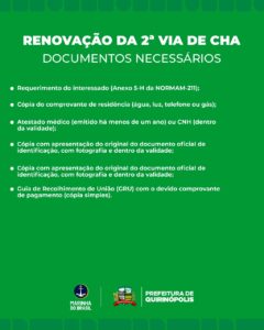 Renovação de segunda via de CHA (carteira de Habilitação Amador)