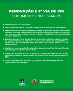Renovação de 2ª via de CIR (caderneta de inscrição e Registro)