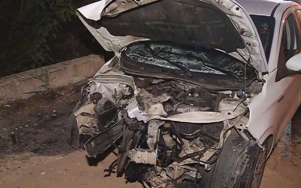 O acidente aconteceu por volta da 5h desta segunda-feira (17), no Setor Urias Magalhães. Uma imagem mostra a frente do carro completamente destruída.