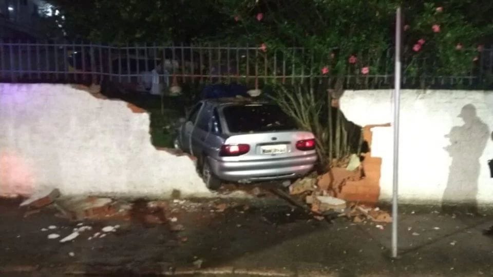 O acidente ocorreu por volta da 1h40, na rua Clemente Demarch, na Barra do Trombudo. O motorista do Ford Escort quebrou o muro da creche Jardim de Infância Ilse Soldatelli.