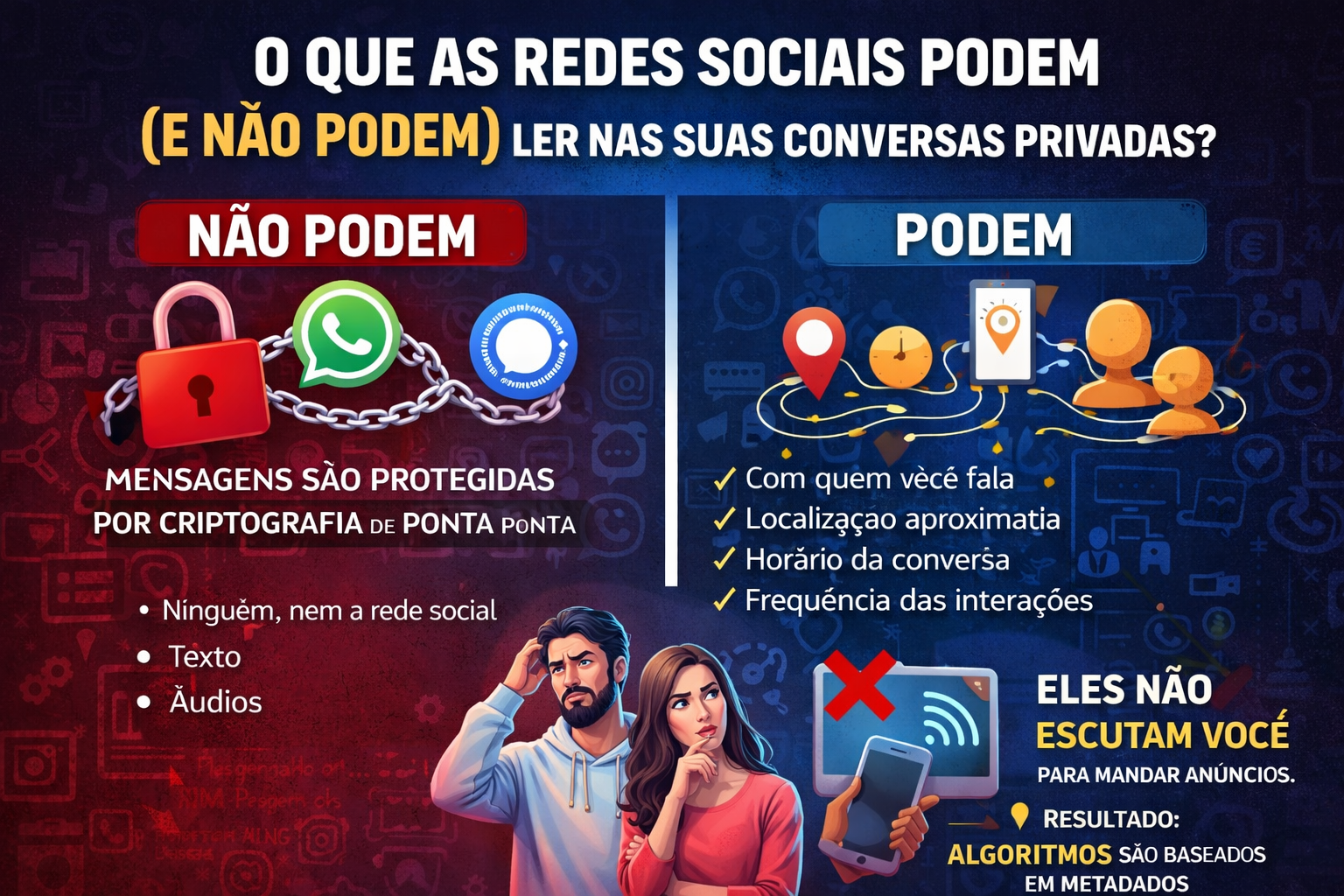 Esses dados, segundo a Electronic Frontier Foundation (EFF), são suficientes para traçar perfis detalhados de comportamento e consumo — sem ler uma única palavra da conversa.