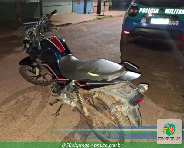 Durante o patrulhamento intensificado em Quirinópolis, a vítima recebeu uma ligação anônima informando que o veículo estava abandonado nas proximidades da Praça do Melado, na cidade. A equipe do 50º BPM, acompanhada da proprietária, localizou a moto no local indicado. O veículo apresentava avarias e estava sem placa, mas a verificação do chassi confirmou se tratar do bem furtado, registrado como roubado/furtado.