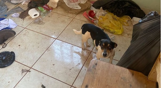 A Polícia Civil está à procura da mulher que abandonou cachorros dentro de uma casa trancada e imunda no município de Caçu, região Sul de Goiás. Dois animais foram resgatados por agentes que entraram no imóvel na manhã desta sexta-feira (8). Um terceiro não resistiu aos maus-tratos. Os policiais não só encontraram os animais desnutridos, como também viram lixo espalhado por toda a parte.